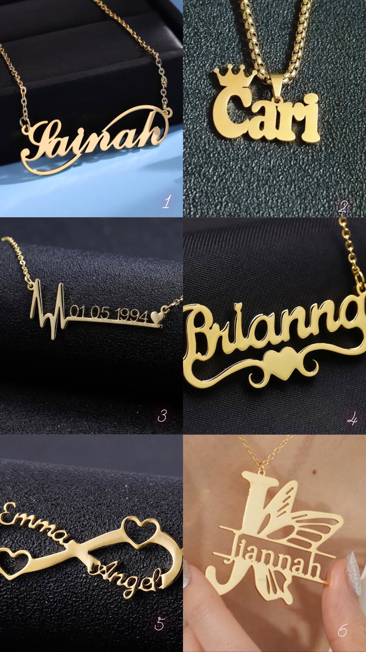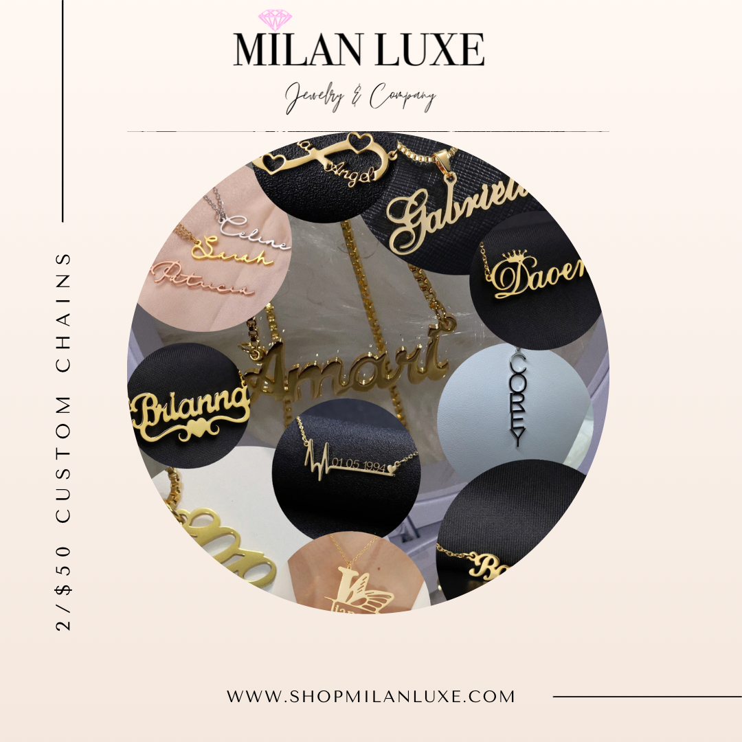 In the CUSTOMIZATION NOTES at checkout please select your two chains by number. Make sure to include Name, Finish, and Chain Length.